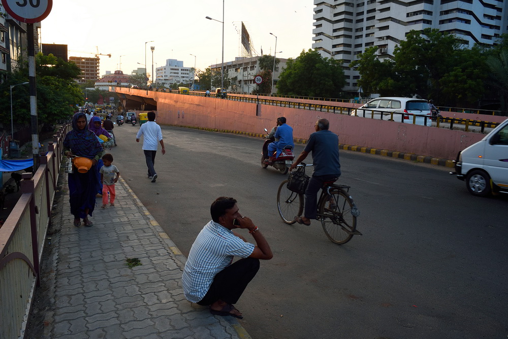 They were never here during the Congress’s rule you know. Only once Bajpah (BJP) came into power did we start seeing these people crowd the narrow lanes. Now all one has to do is pay hafta (protection money) to the guys in Gandhinagar (the capital of Gujurat) and they will let you set up shop wherever. You see that road there? It used to be a one way when Congress was in power. Look at it now. Pay hafta and you can set up whatever you want.